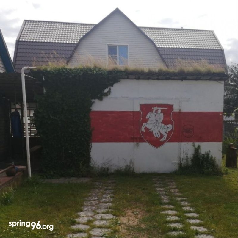 Под пикетированием подразумевался изображенный на гаражных воротах герб «Погоня», который еще в 2007 году был включен в Государственный список историко-культурных ценностей. Ворота с гербом были невидимы как с дороги, так и со стороны соседей. Погоня там находилась уже около 10 лет. Но силовики заметили ее только во время обыска. Позже они заставили родных закрасить «Погоню» на стене и прислать милиционерам результат в сообщении в Viber. При этом первый раз закрасили «плохо», поэтому им сказали сделать это снова.