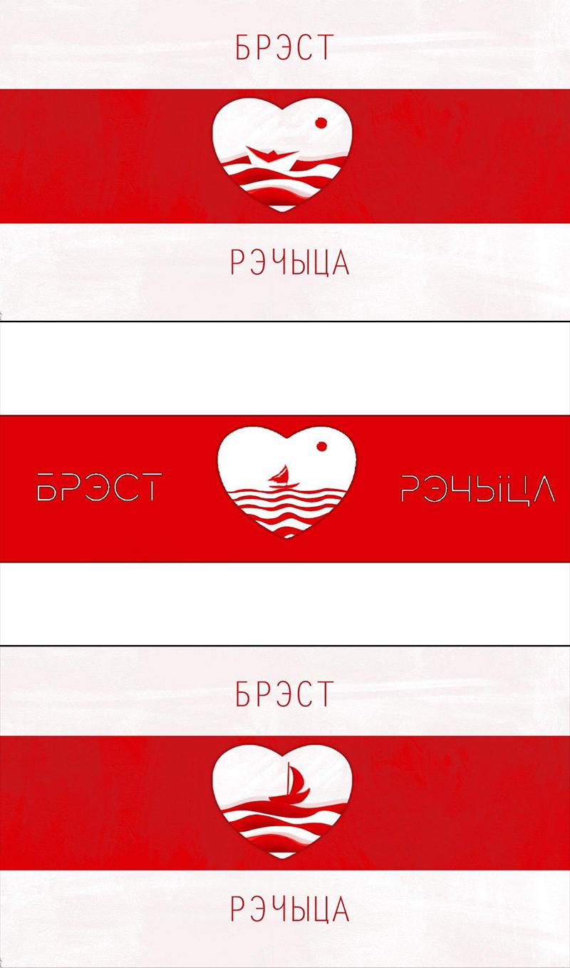 На бело-красно-белых флагах восточной части города фигурирует въездной знак в город со стороны Востока. А также узнаваемые, пожалуй, всеми жителями Бреста 20-этажки, возвышающиеся на улице Московской. Возле одной из них во второй день протестов, кстати, был смертельно ранен сотрудниками правоохранительных органов брестчанин Геннадий Шутов. Позже на месте трагедии возник стихийный мемориал, посвященный погибшему горожанину.