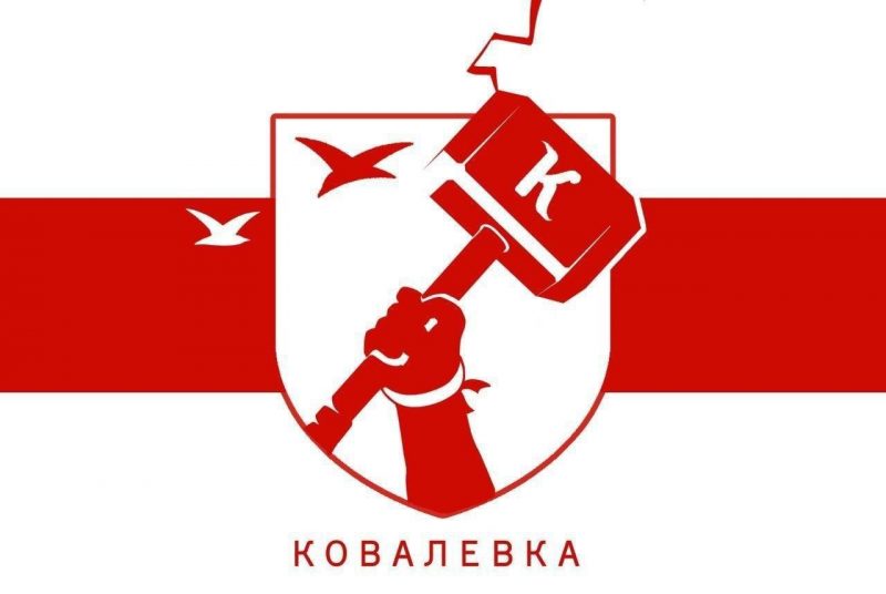 Жители этого микрорайона города решили также поэкспериментировать с названием. А поскольку слово «коваль» с белорусского переводится как кузнец, авторы флага решили изобразить на нем главное орудие его труда — молот. Рядом с ним — чайки. Эти птицы ассоциируются с этим районом из-за близости Гребного канала.
