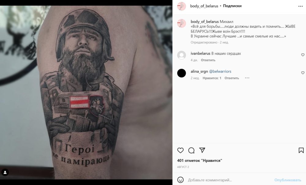 Несколько бойцов полка Калиновского набили татуировки в память о роте тяжелого вооружения и Иване «Бресте» Марчуке.