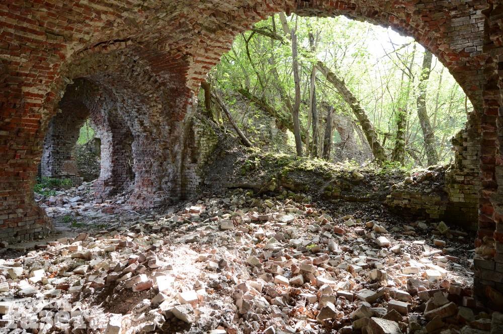 Пороховой погреб 1887-1889 года постройки. В нем можно было хранить 7,5 тыс. пудов (или более 120 тысяч кг) пороха — столько, что можно было нескольким батареям целых 3 дня вести огонь по мере необходимости. Когда заходишь внутрь, дыхание замирает и становится слишком громко от той тишины, которая окутывает тебя в зябком и темном помещении. А еще, говорят, здесь есть привидения.
