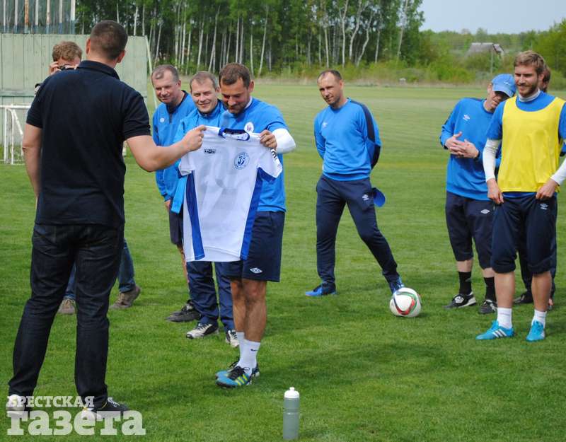 На базу в Красный Двор во вторник приехали более 30 болельщиков. Футболисты прервали тренировку. О подробностях вручения формы и интервью с некоторыми участниками церемонии читайте в бумажной версии «Брестской газеты», которая выйдет в свет в четверг 14 мая.