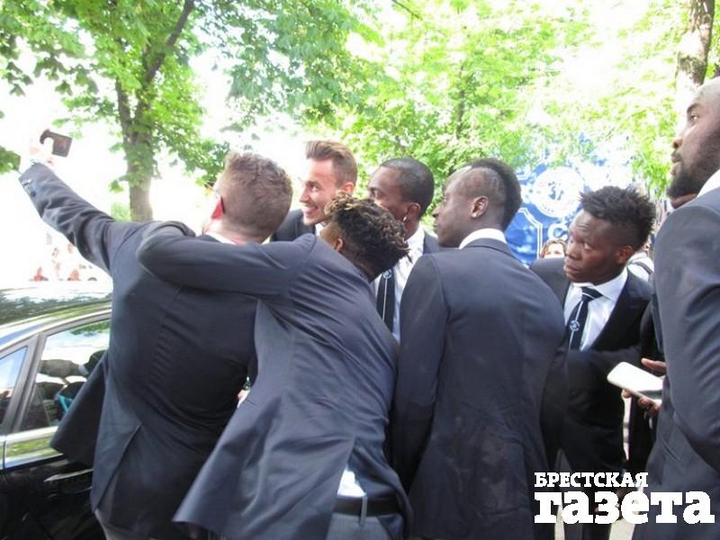 Перед началом торжественного мероприятия динамовцы заканчивали последние приготовления у спорткомплекса, делали селфи, раздавали автографы юным поклонникам.