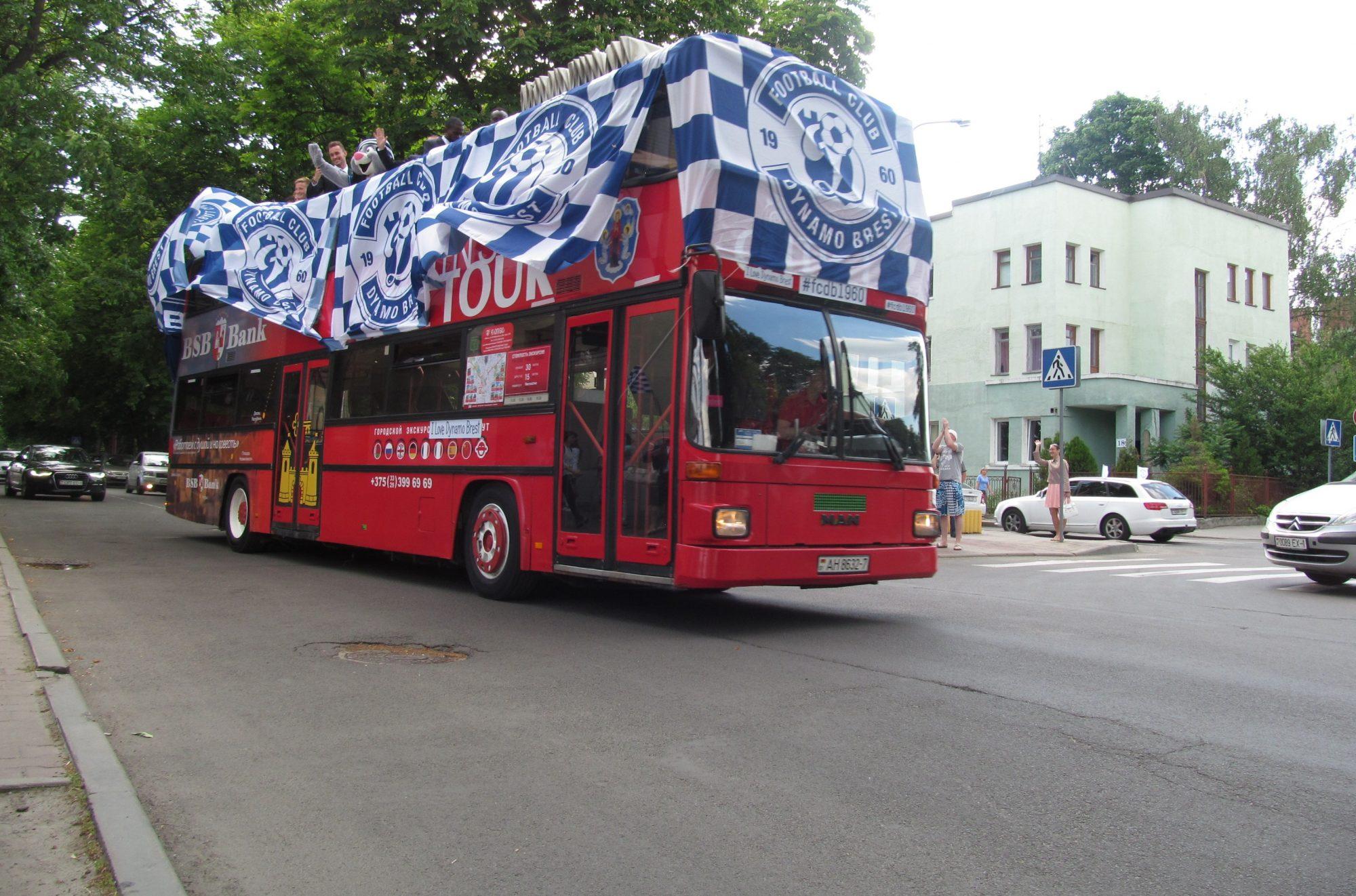Он проехал по ул. Московской до въезда в город, затем развернулся и направился к Ледовому дворцу, где прошло чествование обладателей Кубка Беларуси.