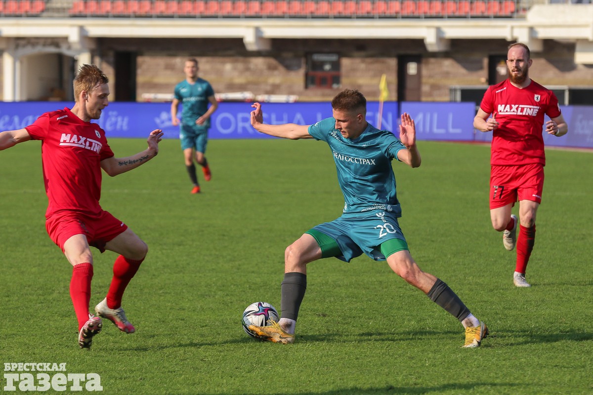 Брестчане открыли счет уже на первой минуте, забив один из самых быстрых голов этого чемпионата. Денис Лаптев ворвался в штрафную и пробил в голкипера, но спустя несколько секунд в доигровке эпизода головой переправил мяч в сетку.