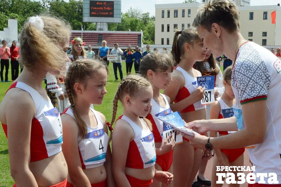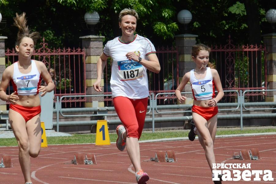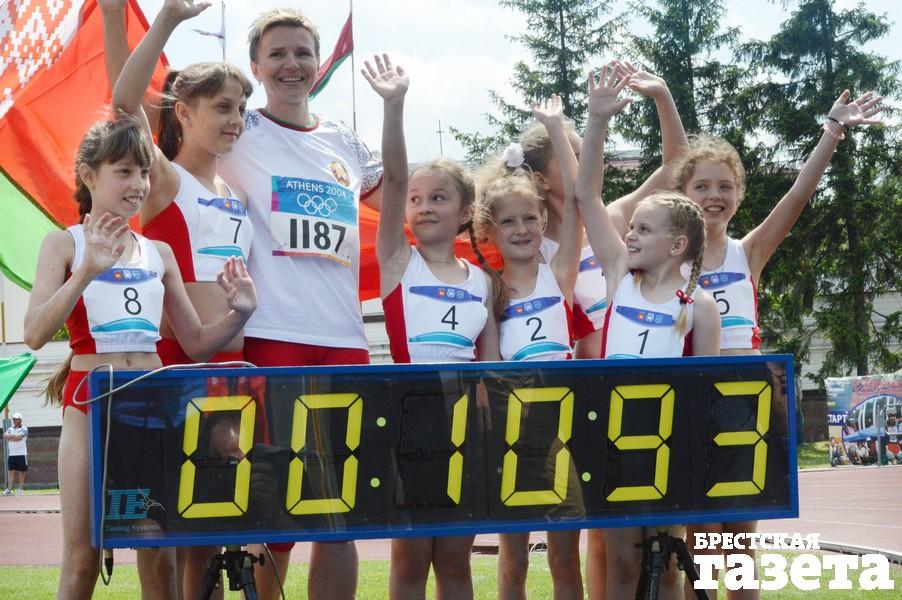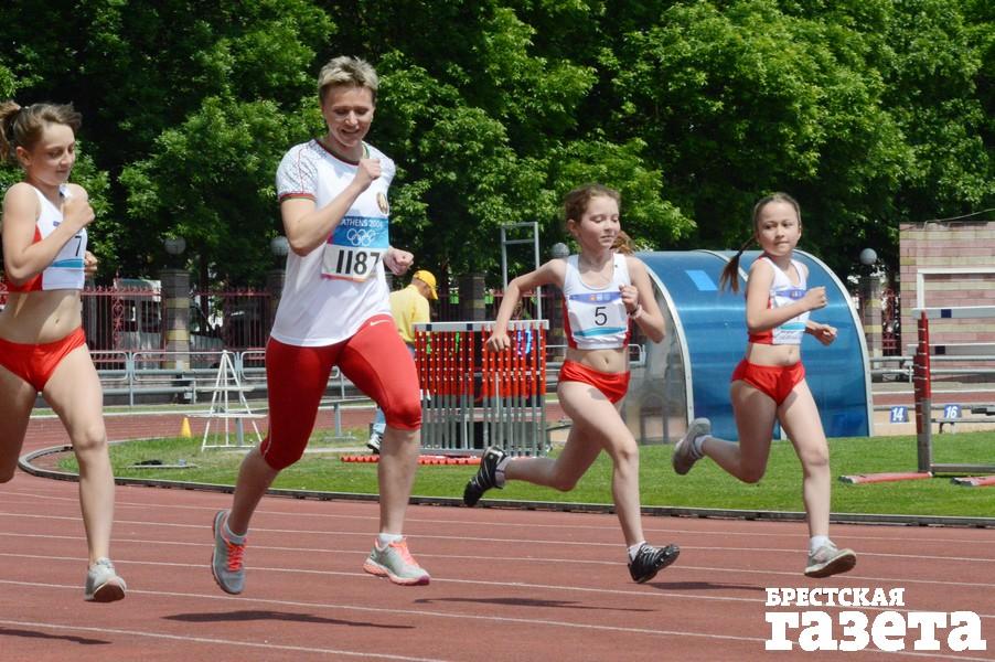 Юлия Нестеренко пробежала 31 мая символическую стометровку с юными спортсменками, воспитанницами Брестской СДЮШОР, на ОСК «Брестский».